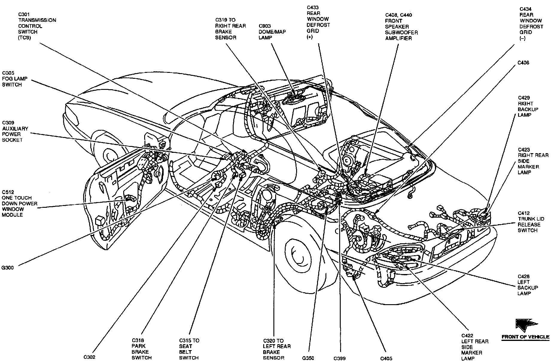The One Touch Down Power Window Module is located at the lower rear of the LH door.