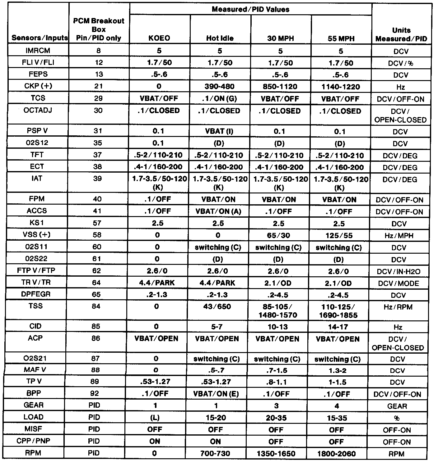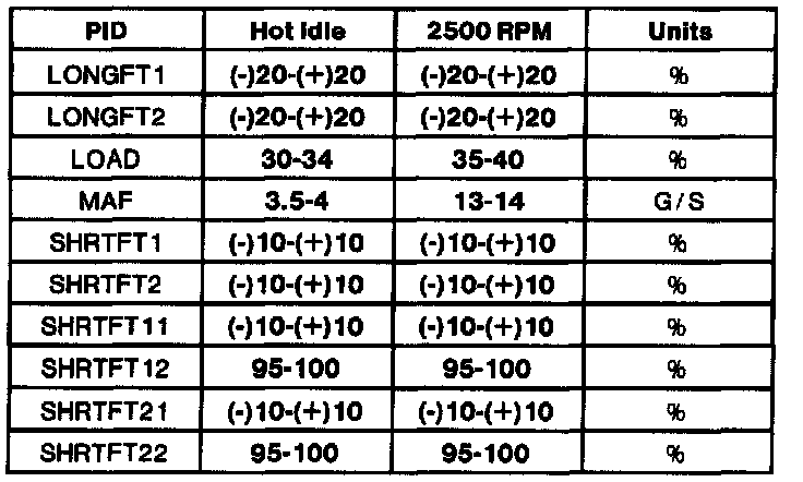 - All generic OBD II readings under no load (PARK or NEUTRAL).