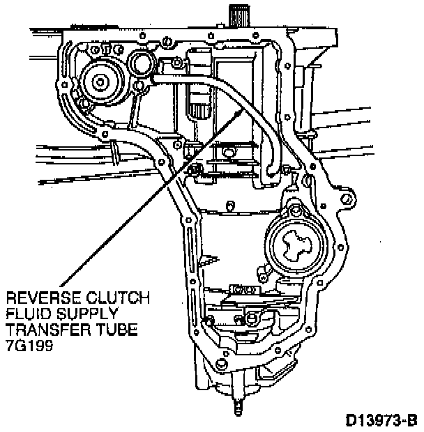 55. Install new O-rings on the fluid supply tube it removed. Install reverse clutch oil supply tube in position and tap lightly until fully seated.