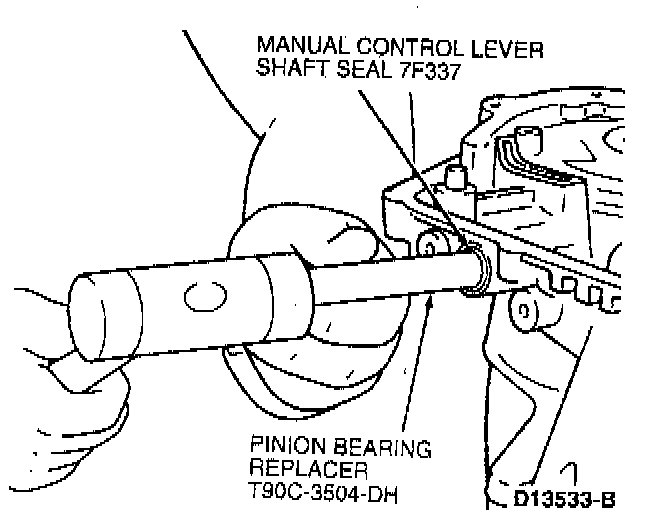 60. Install new manual control lever shaft seal using Pinion Bearing Replacer 211-161 (T90C-3504-DH).
