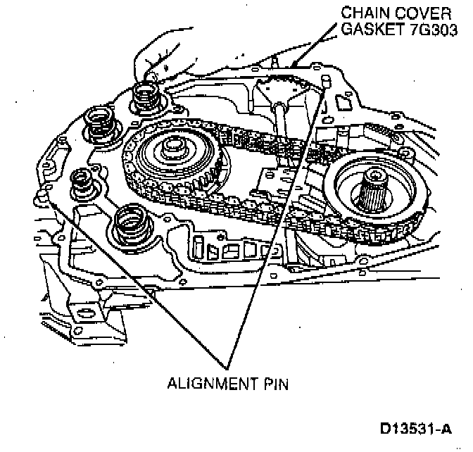 NOTE: After installing chain cover, input shaft should have some end play and should rotate freely. If it will not rotate freely, remove chain cover and inspect cast iron seal for damage.