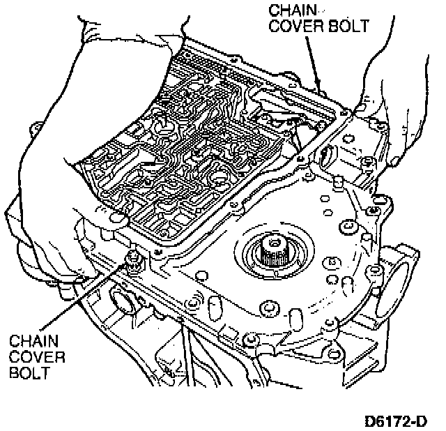 70. Start remaining chain cover bolts. Tighten bolts evenly, working from the center outward.