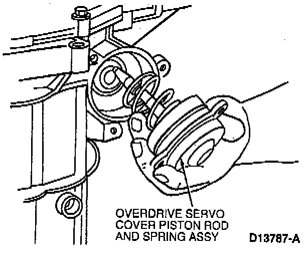 78. Install overdrive servo cover, piston, rod and spring assembly. Tighten retaining bolts to 9-12 Nm (80-106 in lb).