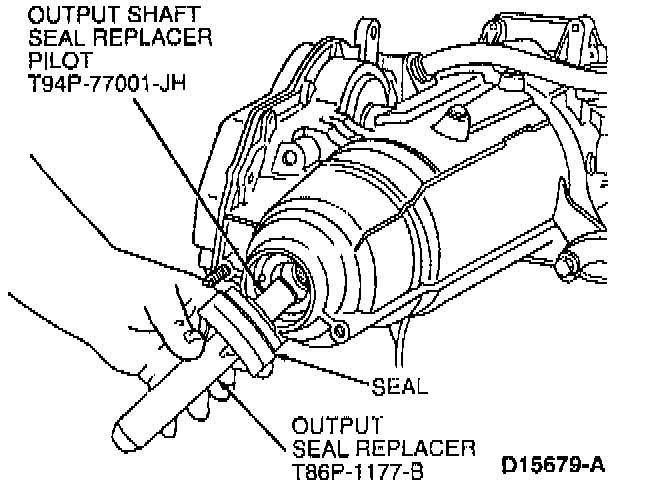 100. Install RH output shaft seal using Output Seal Replacer 307-157 (T86P-1177-13) and Output Shaft Seal Replacer Pilot 307-317 (T94P-77001-JH).