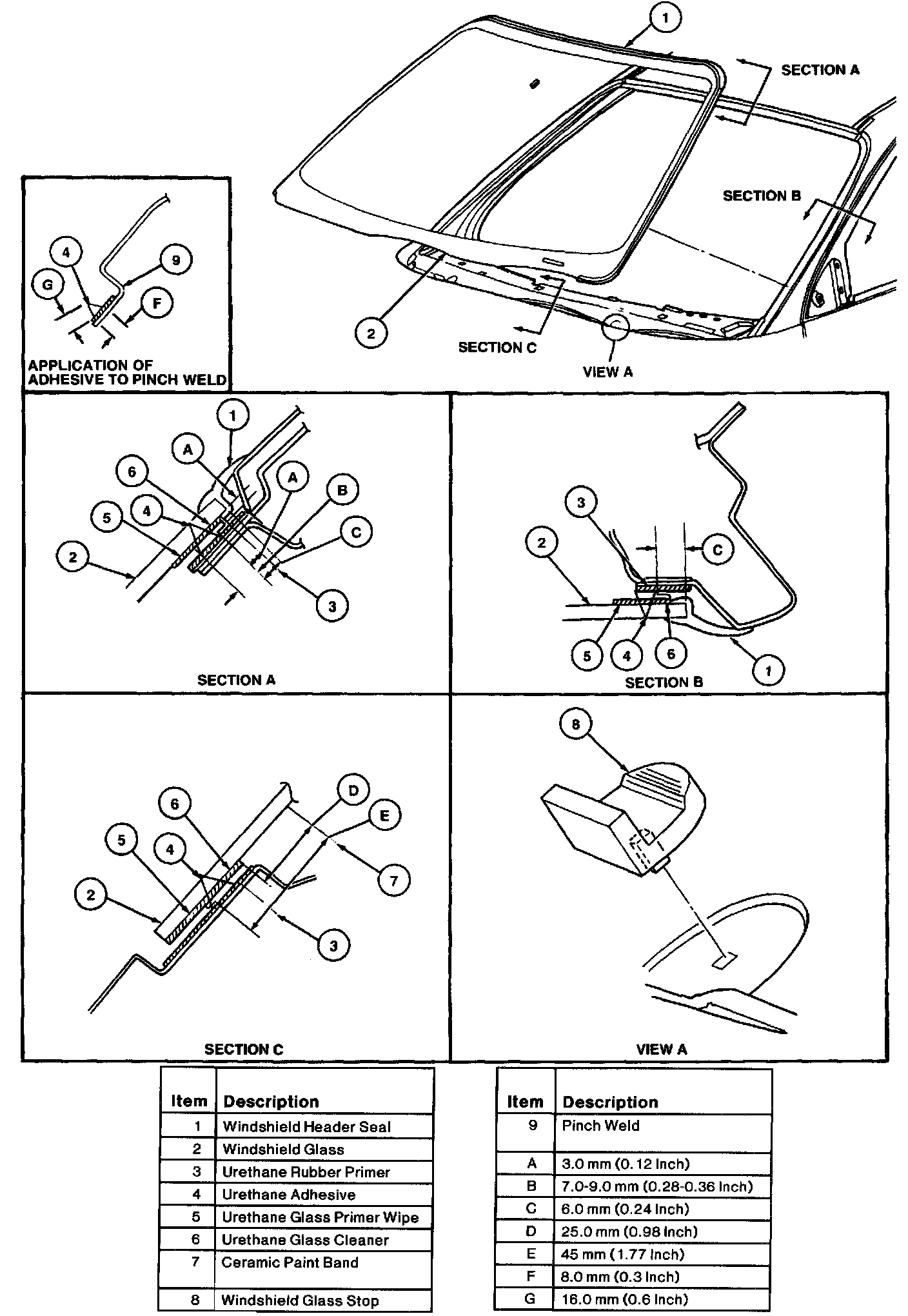 ^ Use only urethane for service of air and water leaks in urethane-set windshield.