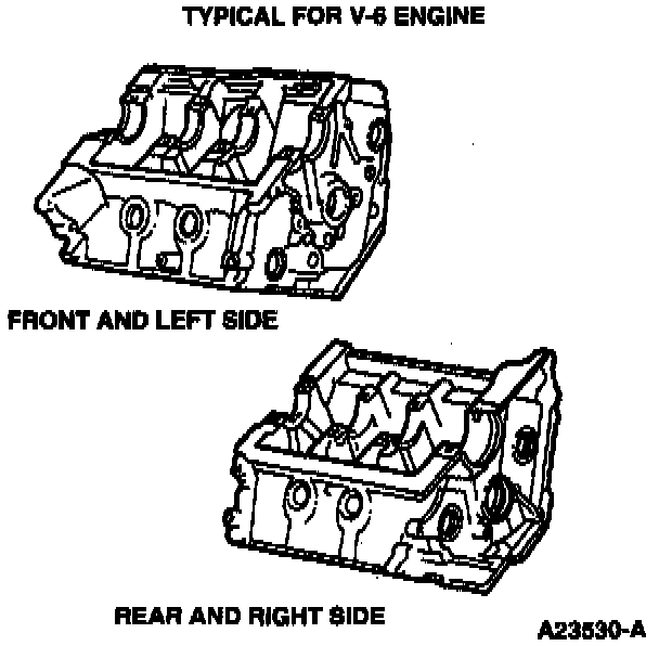- Cylinder block surfaces extending along the length of the cylinder block, upward from the oil pan rail to the cylinder water jacket but not including machined areas.