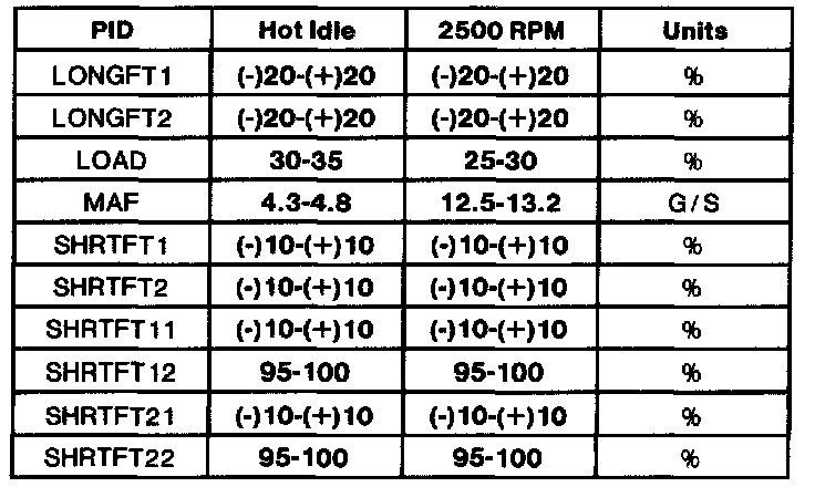 - All generic OBD II readings under no load (PARK or NEUTRAL).