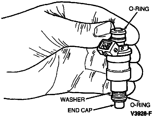 5. Inspect fuel injector end cap, body and washer for signs of dirt and deterioration. Replace fuel injector as required.