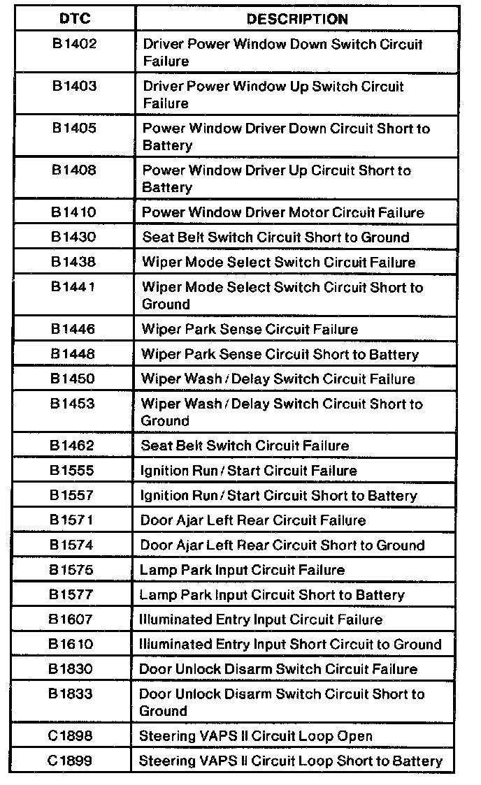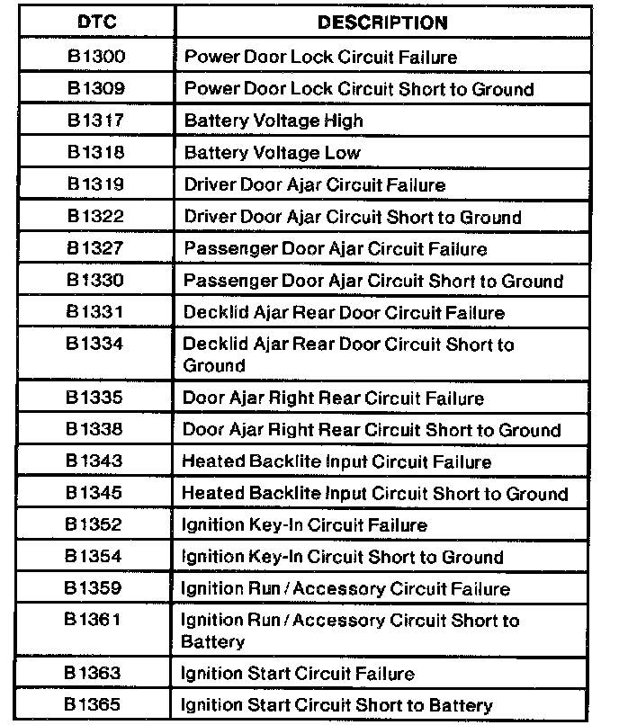 Diagnostic Trouble Code Descriptions