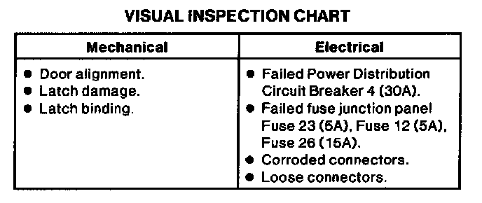 1. Verify the customer's concern by operating the power door locks and liftgate or luggage compartment door remote release to duplicate the condition.