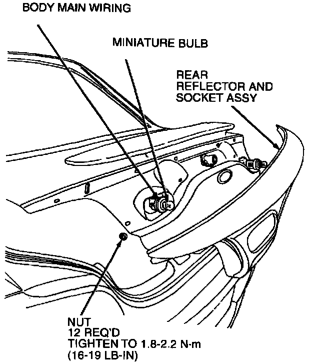 1. Open luggage compartment door. Remove 12 nuts from rear reflector and socket assembly mounting studs.