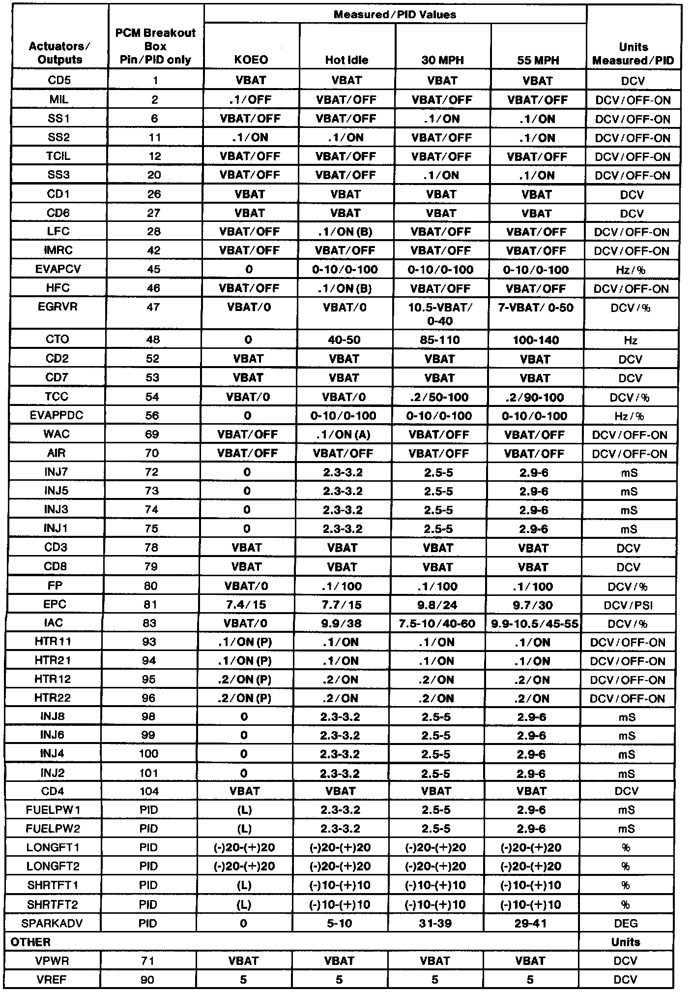 - The Typical Diagnostic Reference Value Charts do not display fault PIDs. These are PIDs which indicate a hard fault with the circuit. They display a value of "YES" or "NO" and are PIDs ending with an "F". These do not include EVAPPF, FF, MAF or VREF.