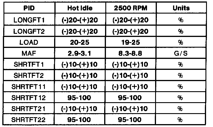 - All generic OBD II readings under no load (PARK or NEUTRAL).