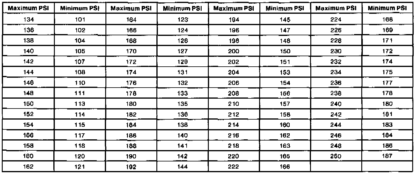 The indicated compression pressures are considered within specification if the lowest reading cylinder is within 75 percent of the highest reading. Refer to the separate Compression Pressure Limit Charts.