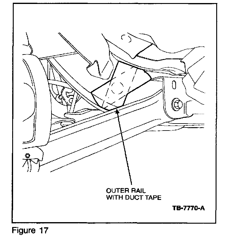 1. Clean around the tooling hole and all other holes in the area on the frame rail located between the upper and lower trailing arm-mounting brackets (Figure 17 and 18).