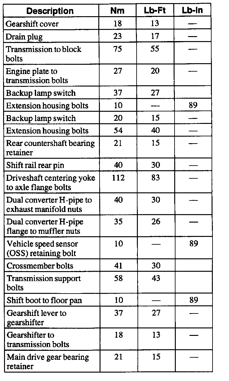 Torque Specification