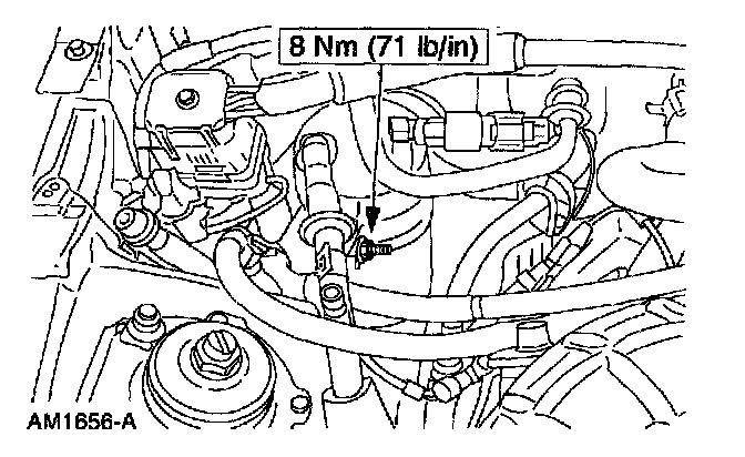 - Lubricate the O-ring seal with PAG Compressor Oil, YN-12c, F7AZ-19589-DA or equivalent meeting Ford specification WSH-M1C231-B.