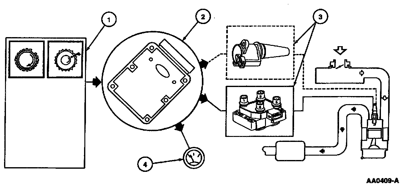 The Ignition System is designed to ignite the compressed air/fuel mixture in an internal combustion engine by a high voltage spark from an ignition coil. The ignition system also provides engine timing information to the Powertrain Control Module (PCM) for proper vehicle operation and misfire detection.Integrated Electronic Ignition: