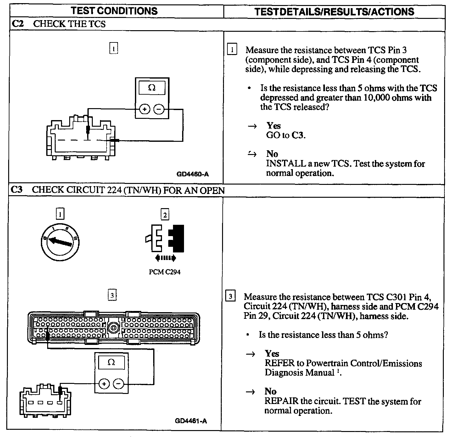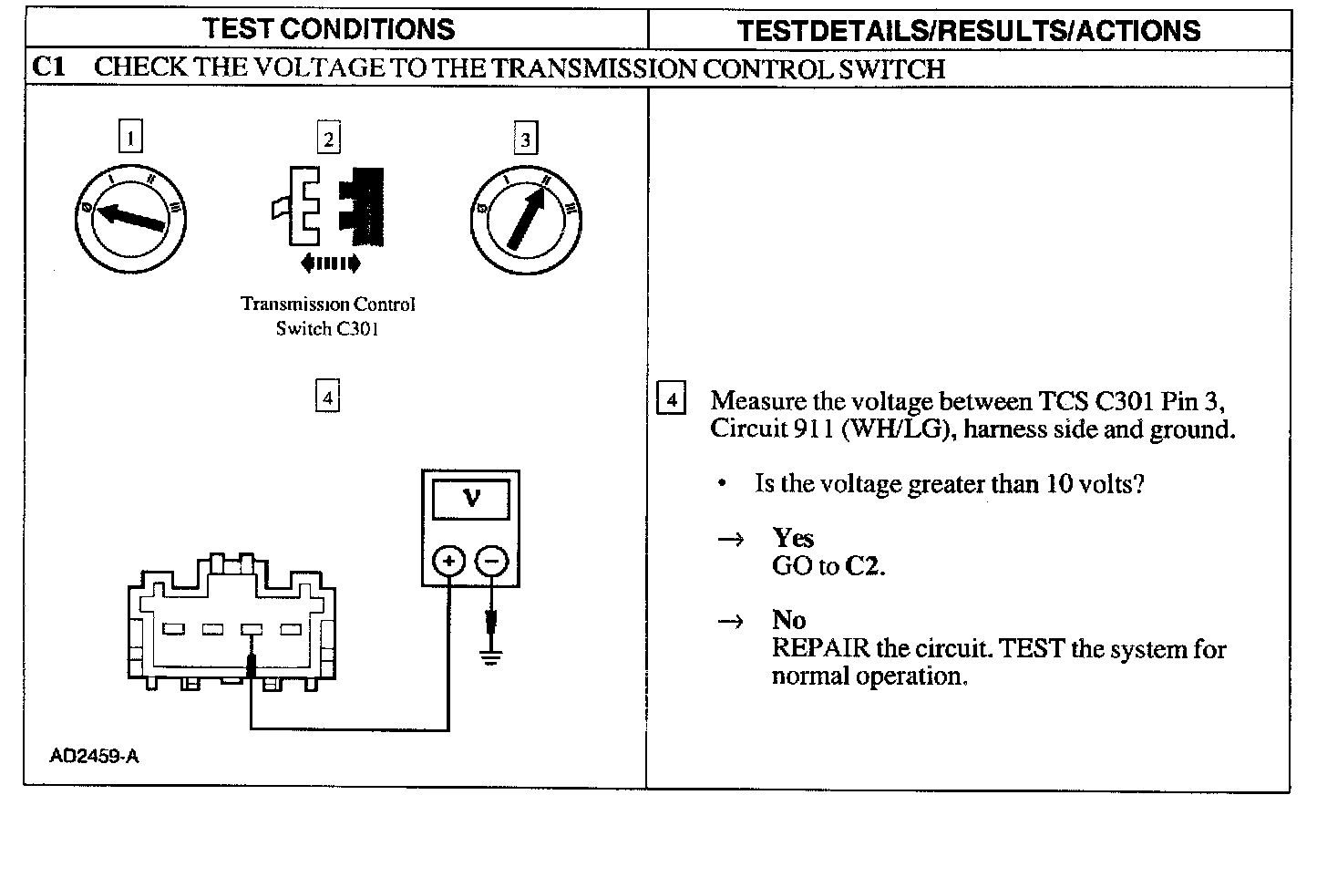 Pinpoint Test C: THE TRANSMISSION CONTROL SWITCH (TCS) IS INOPERATIVE