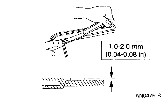 6. Trim the urethane on the pinch weld to within 1 mm (0.04 inch) and 2 mm (0.08 inch).