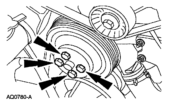 4. Remove the bolts and the water pump pulley.