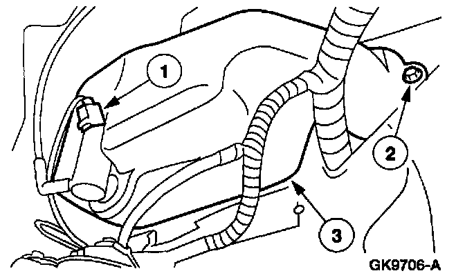 NOTE: To prevent spilling windshield washer fluid, drain the windshield washer reservoir before removal.