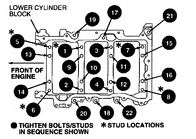 17. Tighten lower cylinder block to upper cylinder block retaining bolts in sequence, as follows: