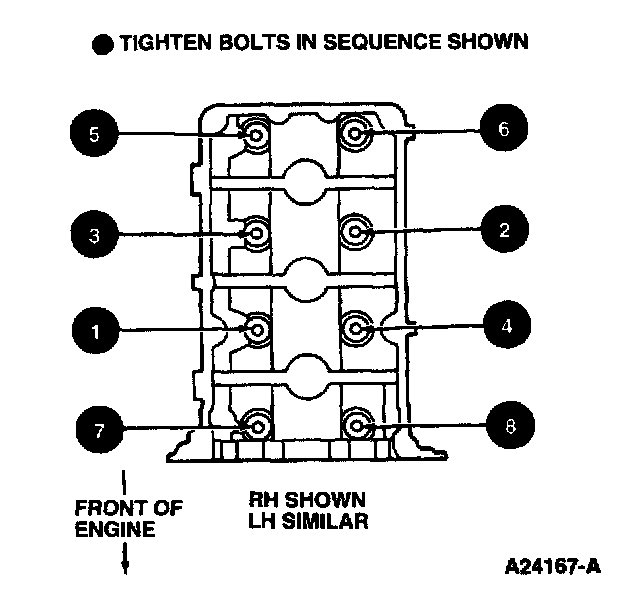 - Tighten fasteners 1 through 8 to 22-28 Nm (17-20 ft. lbs.)