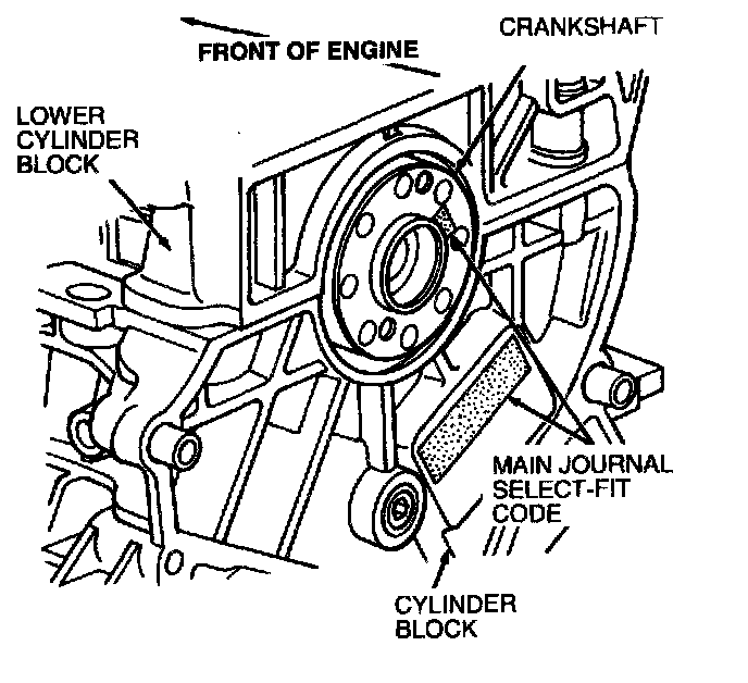 Using the 11-character code located on the cylinder block and crankshaft, select the proper grade of crankshaft main bearings as follows: