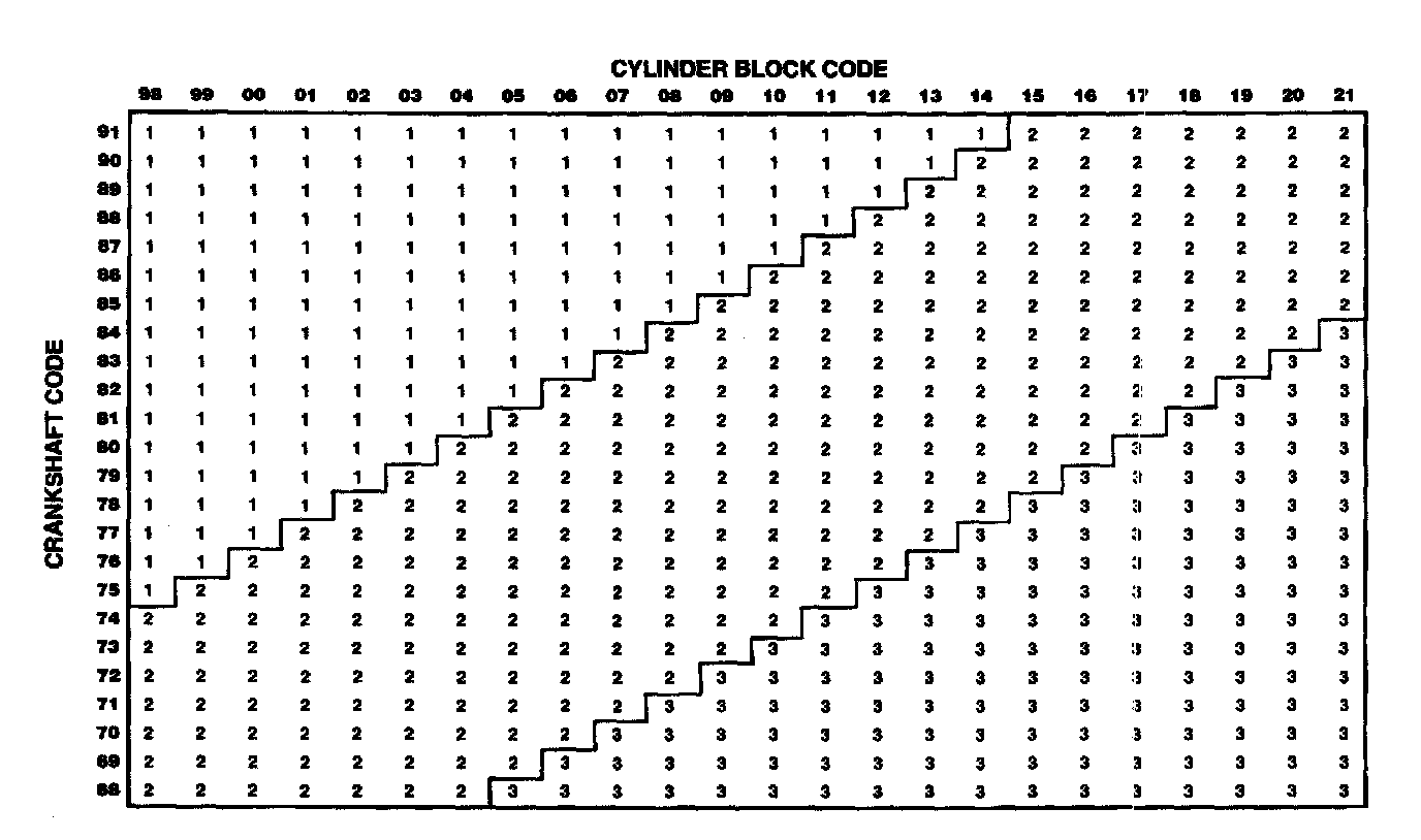- Using the Select Fit Main Bearing Grade Chart and the character codes noted above, move across and down the appropriate row and column to select the bearing grade for the No. 1 main journal.