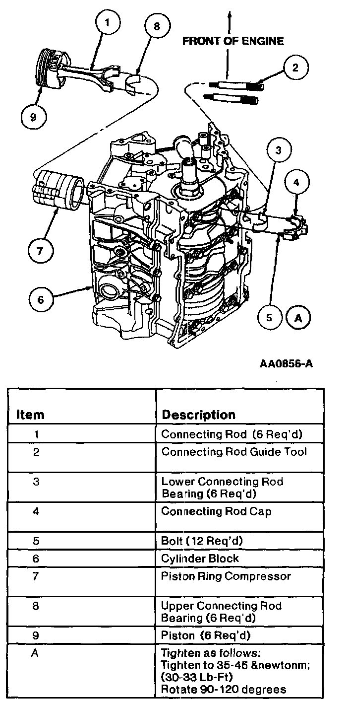 NOTE: Lubricate pistons, piston rings, connecting rods and connecting rod bearings with Engine Assembly Lubricant D9AZ- 19579-D or equivalent meeting Ford specification ESR-M99C80-A prior to installation.