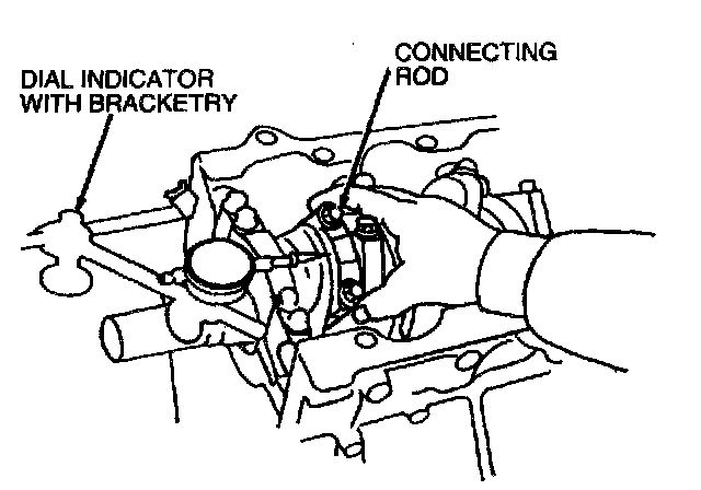 Check connecting rod side clearance using Dial Indicator with Bracketry 100-002 (TOOL-4201-C) or equivalent. Side clearance should be 0.10-0.25 mm (0.004-0.010 inch).