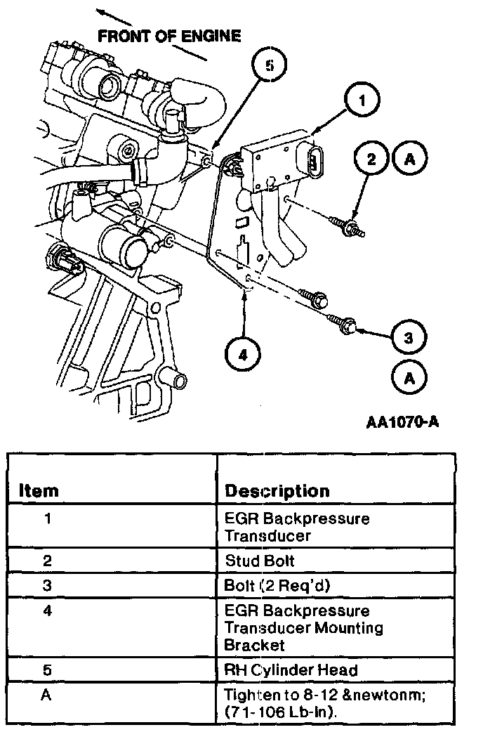41. Install EGR backpressure transducer and mounting bracket to the rear of the RH cylinder head. Tighten retaining bolts to 8-12 Nm (71-106 inch lbs.).