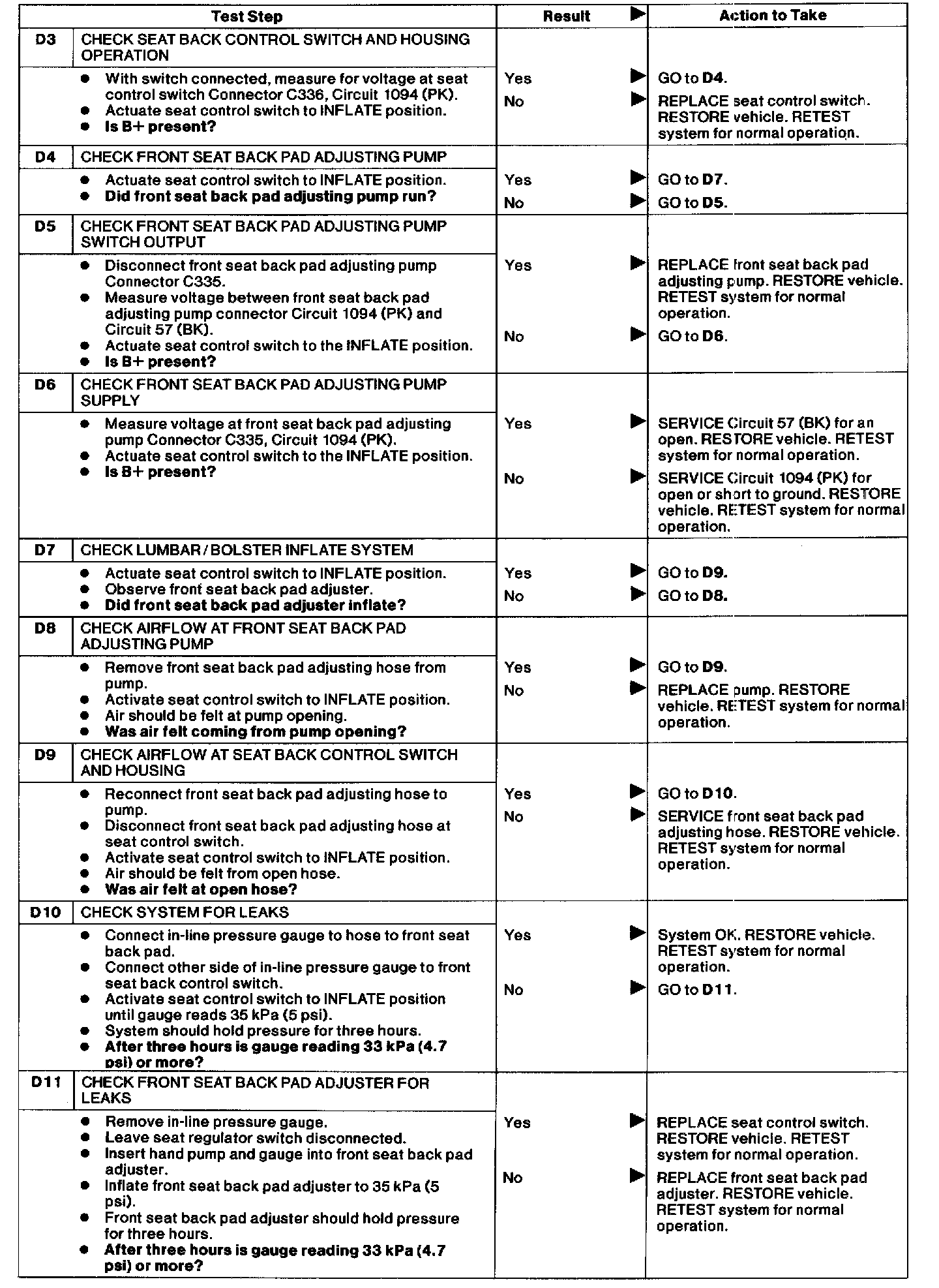 D: Power Lumbar Support Does Not Work Properly