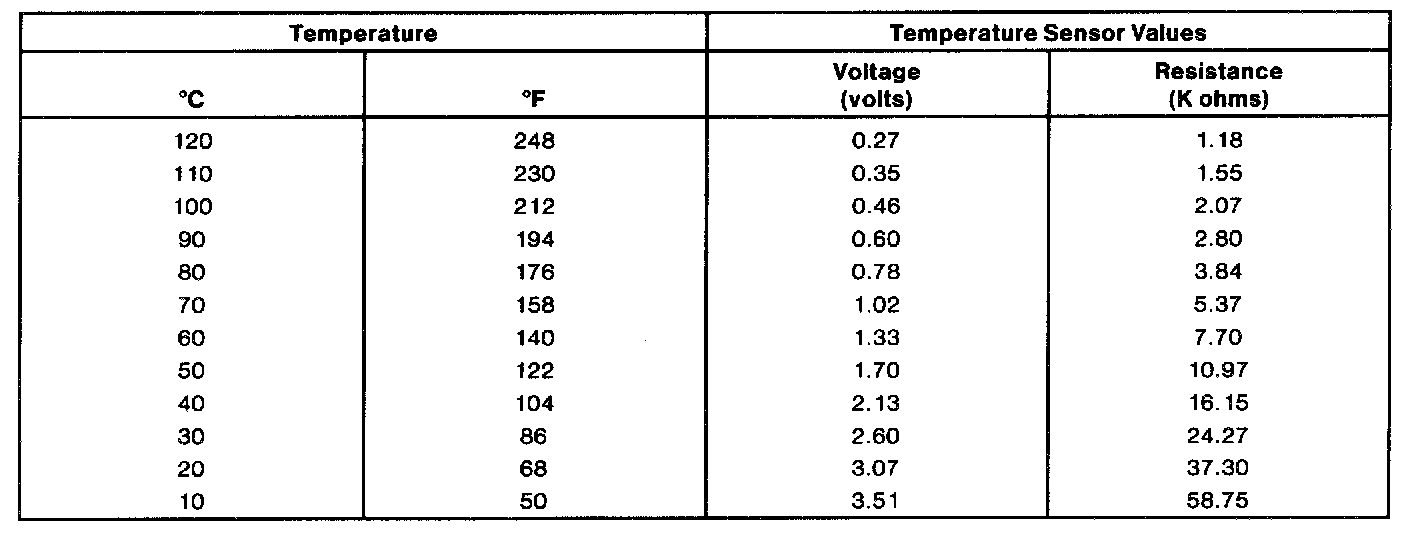 Voltage values were calculated for VREF = 5.0 volts. These values can vary 15 percent due to sensor and VREF variations.