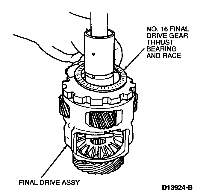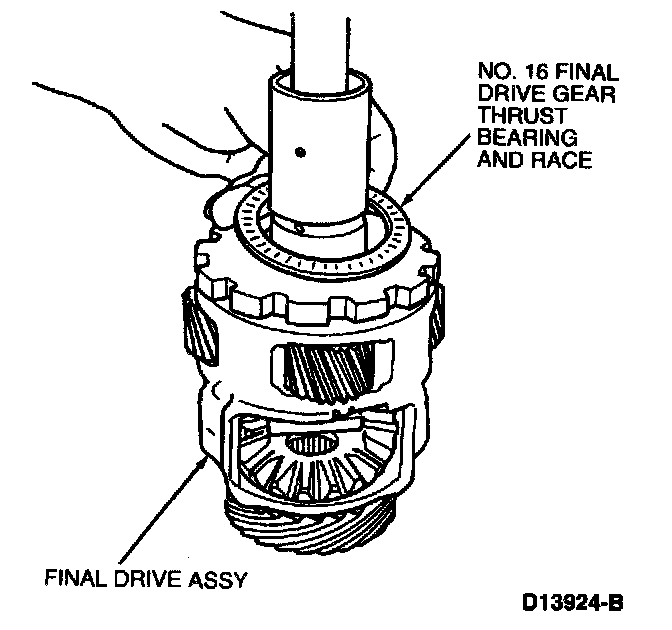 1. Remove No. 16 final drive gear thrust bearing and race from final drive assembly.