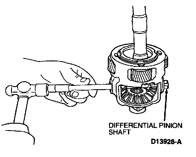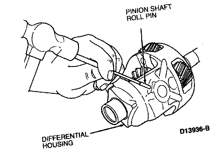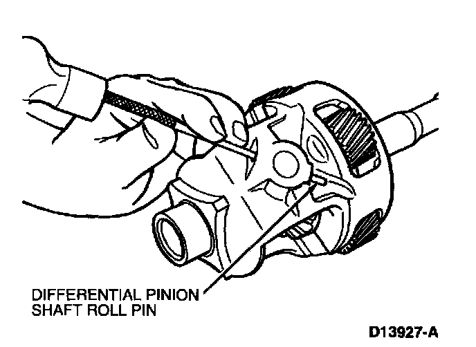 5. IF NECESSARY, use a drift to drive out differential pinion shaft roll pin.