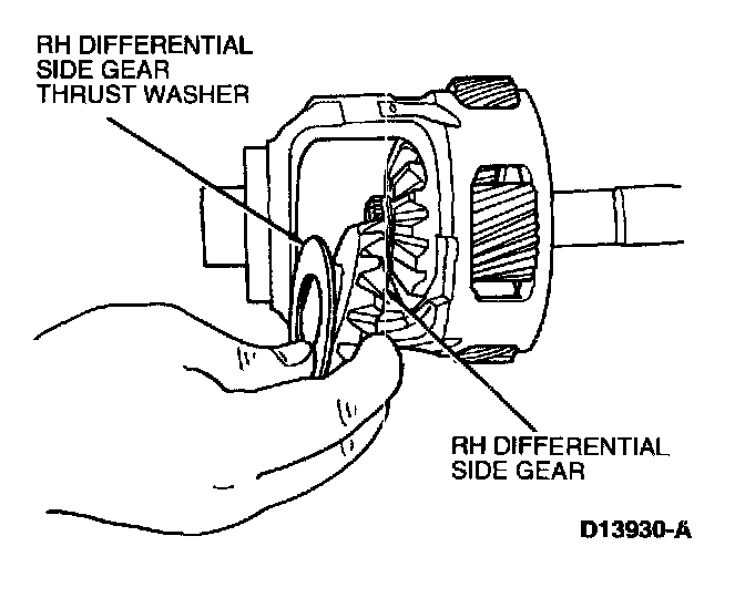8. Remove RH differential side gear and differential side gear thrust washer from differential case.