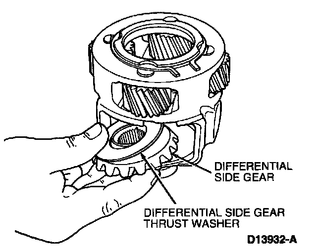 10. Remove differential side gear and differential side gear thrust washer.