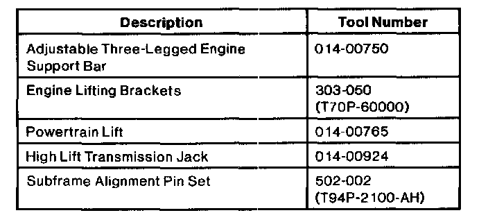 29. Remove Adjustable Three Legged Engine Support 014-00750 or equivalent and Engine Lifting Brackets 303-050 (T70P-6000) when necessary.