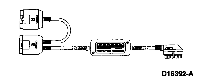 Installing the transmission tester at the transaxle harness connector allows the separation of the TR sensor electronics from the vehicle electronics.