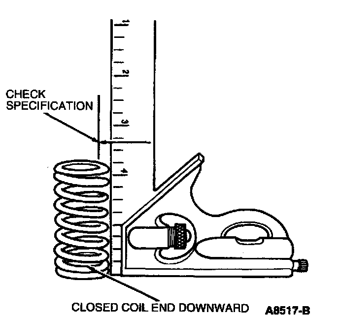 Check each valve spring for squareness, using a steel square and a flat surface. Stand the valve spring and square on end on the flat surface. Slide the valve spring up to the square. Revolve the valve spring slowly and observe the space between the top coil of the valve spring and the square.
