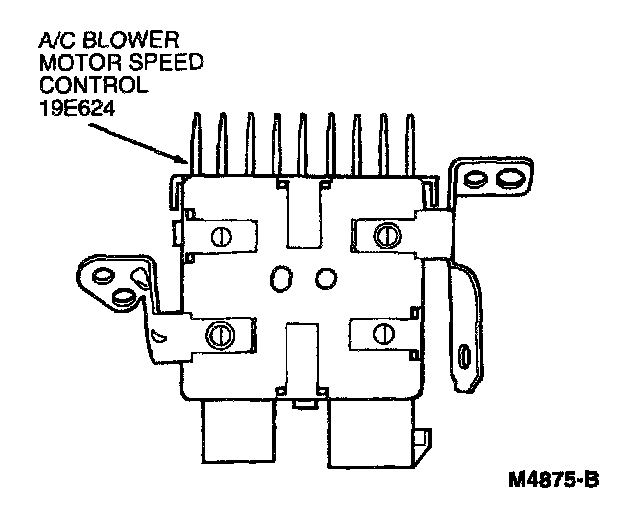 The A/C blower motor speed control is a Pulse Width Modulated (PWM) type which provides variable blower speed control of the blower motor. The A/C blower motor speed control is controlled by switching the control signal voltage of 5 volts OFF and ON, 2,000 times per second. By varying the ratio of time on (+5 volts) to time off (0 volts), the Electronic Automatic Temperature control (EATC) module tells the A/C blower motor speed control how fast the blower motor should run. The A/C blower motor speed control has the following features: