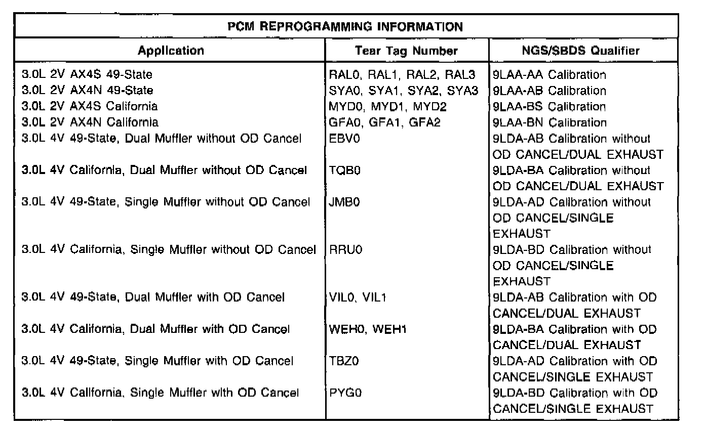 THE OVERDRIVE SWITCH HAS BEEN DELETED FROM THE SHIFTER ON VEHICLES EQUIPPED WITH 3.0L 4-VALVE DURATEC ENGINES. SINGLE EXHAUST ON SOME VEHICLES EQUIPPED WITH 3.0L 4-VALVE DURATEC ENGINES.