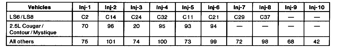 Injector PCM Connector Pin Numbers: