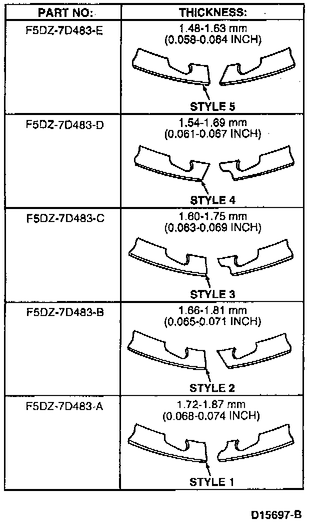 50. Use Reading D to select the correct No. 5 thrust washer from the chart below.