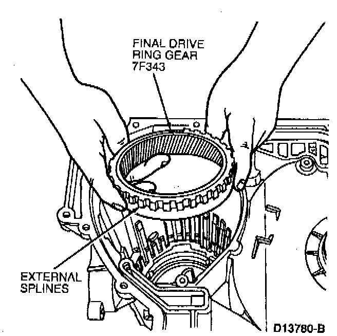 10. Lower final drive assembly and rear planet support assembly into case as one unit.
