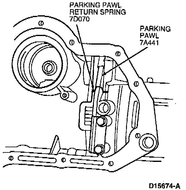 1. NOTE: Make sure that the parking pawl engages the park gear and returns freely.