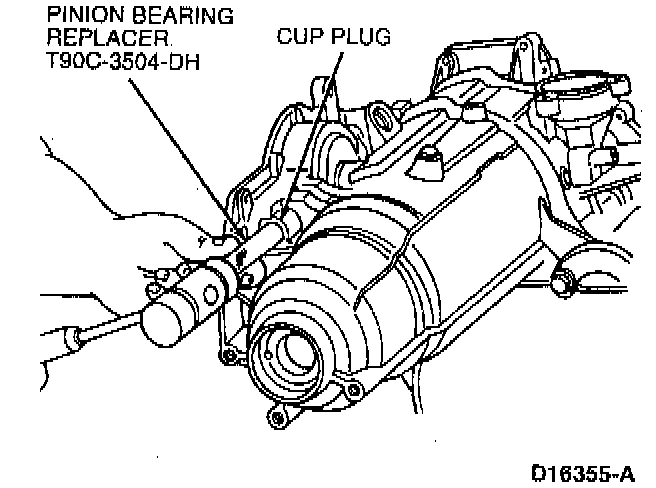 3. Install cup plug to case using Pinion Bearing Replacer 211-161 (T9OC-3504-DH).
