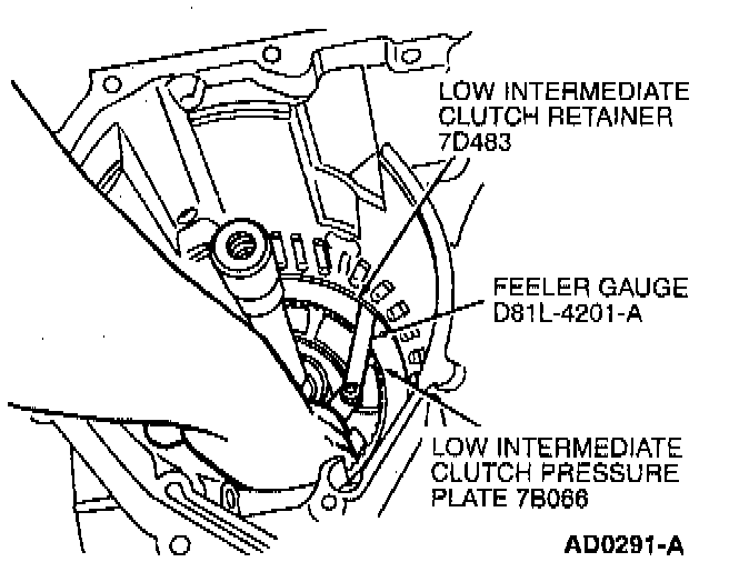 29. Use a feeler gauge to measure the clearance between the clutch pressure plate and the clutch retainer. The clearance should be 1.27-1.90 mm (0.050-0.075 inch).